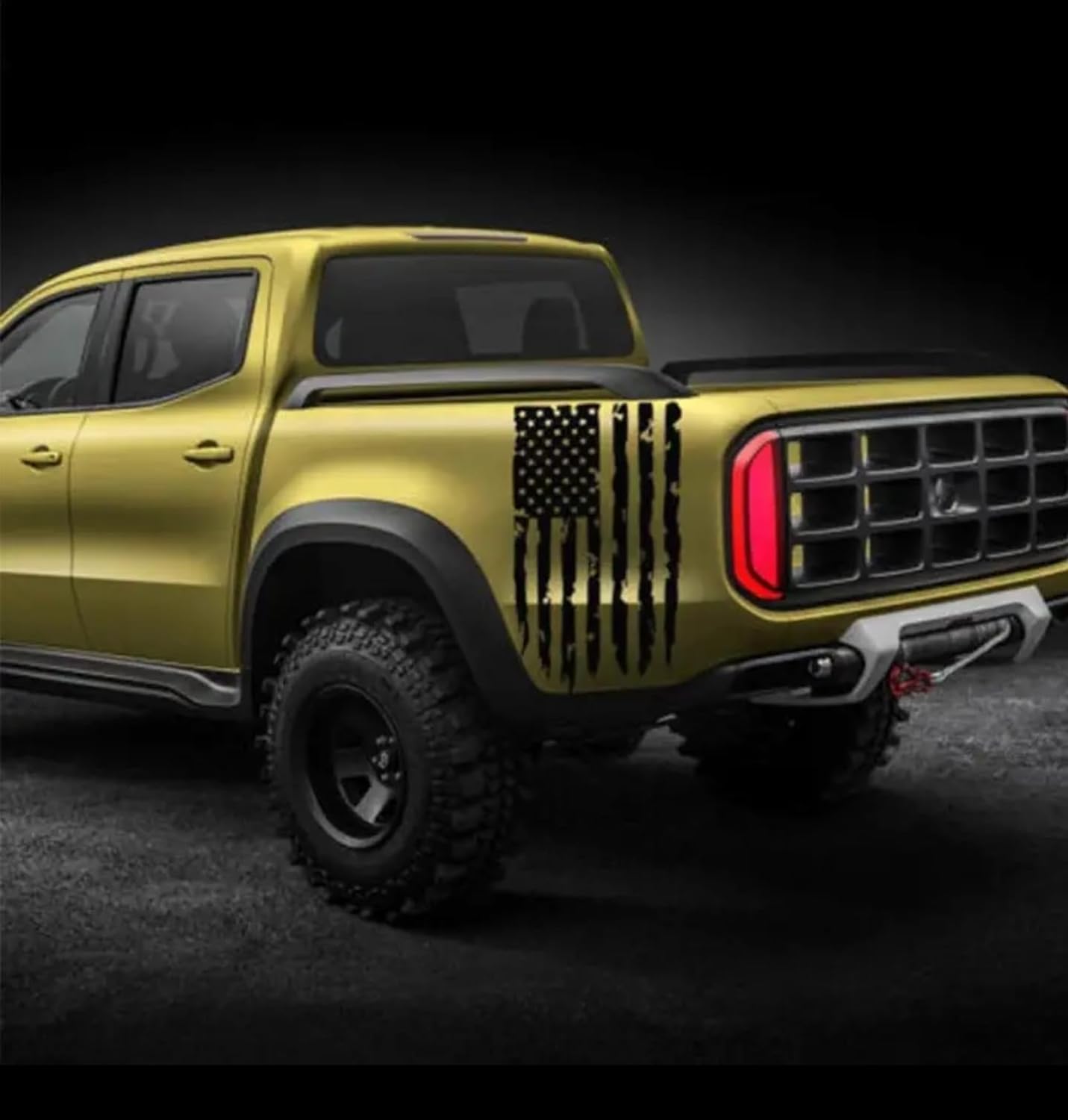 Show off your patriotic spirit with the Distressed American USA US Flag Truck Tailgate Vinyl Decal. This high-quality car sticker is made of weather-resistant vinyl that will last through all kinds of weather conditions. Measuring 12" x 20" and available in black, this graphic decal is perfect for most pickup trucks.Key Features:- Distressed American USA US Flag design- High quality and long-lasting vinyl material- Weather-resistant for durability in any climate- Compatible with most pickup trucksThis graphic car sticker is a must-have for any proud pickup truck owner who wants to display their love for their country. The distressed flag design adds a unique touch to your vehicle's tailgate, making it stand out on the road.The Distressed American USA US Flag Truck Tailgate Vinyl Decal is easy to apply and will adhere firmly to your truck's surface without damaging the paint job. Whether you're driving around town or on a road trip across the country, this decal will make a bold statement everywhere you go.In summary, if you're looking for an eye-catching way to show off your patriotism while driving around town or on long trips across the country, look no further than this durable and weather-resistant vinyl decal compatible with most pickup trucks!