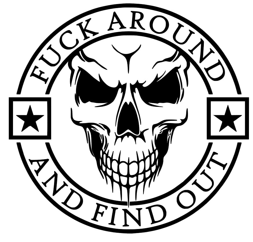 The FAFO SKULL decal is a perfect addition to your car, truck, wall, window, bumper or tailgate. Available in two sizes - 6x6 or 10x10 inches - this premium vinyl decal won't fade or crack over time. Applying the decal is made easy with the clear transfer tape provided. With multiple colors available to choose from and its bold statement "Fuck around and find out!", this decal will turn heads wherever you go. Get your FAFO SKULL decal today!
