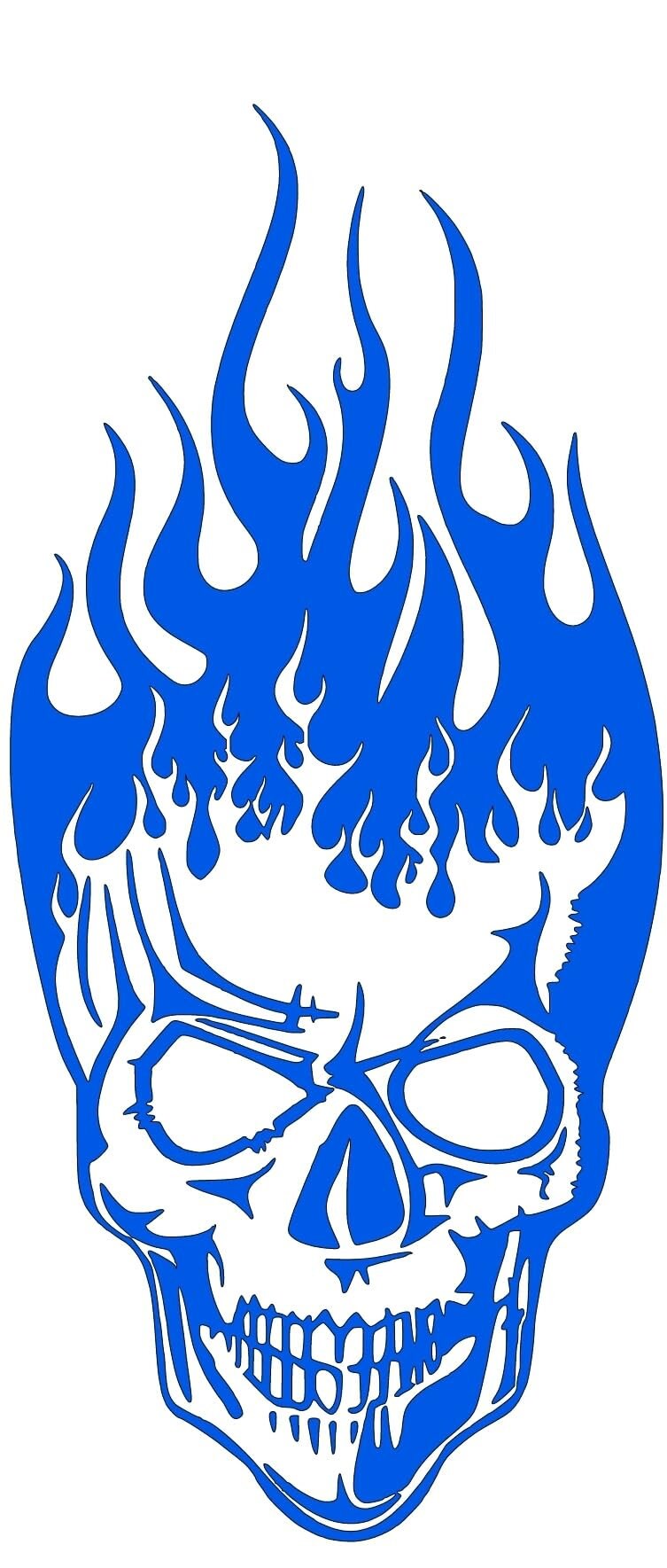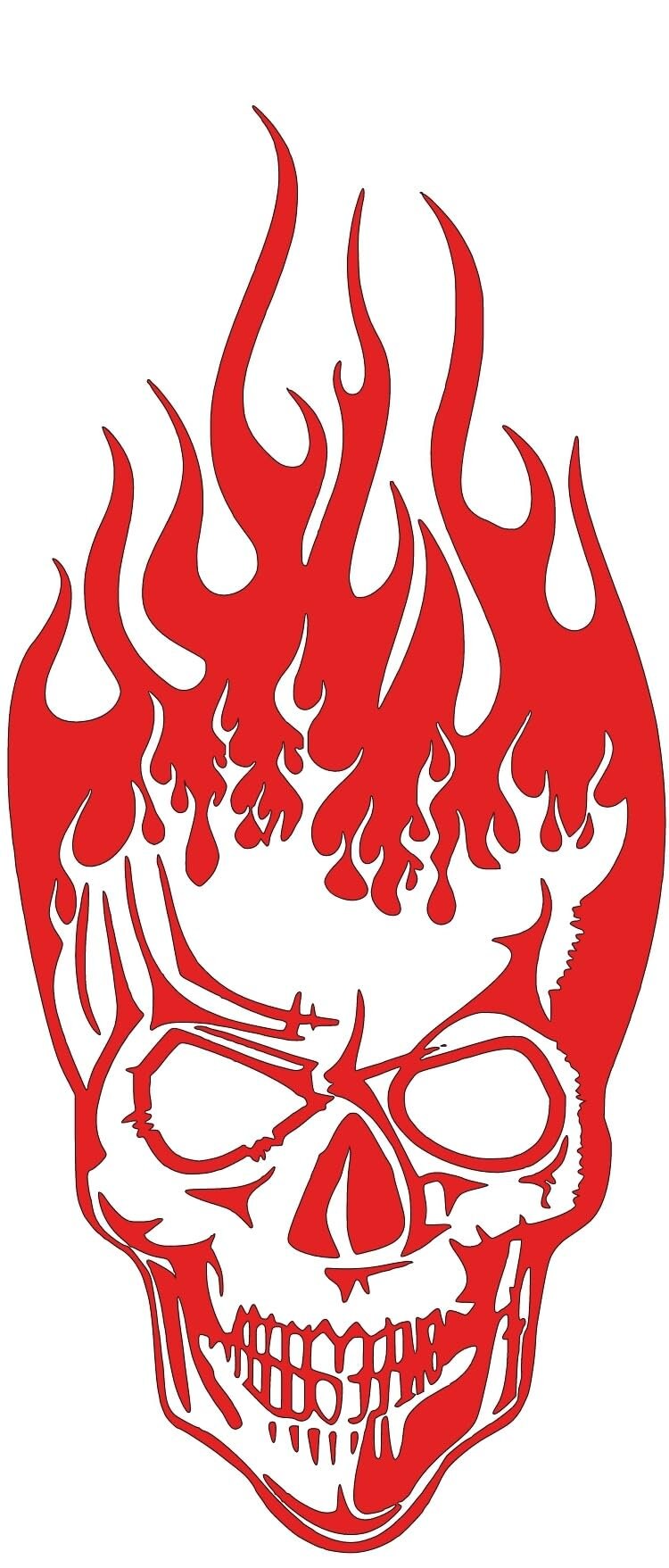 1- skull fire decal for truck, car or any other clean smooth surfaces like laptops and walls. Comes on clear transfer tape so you can see exactly how it will look while you apply it. Size is 5 Inches wide by 11 inches tall.