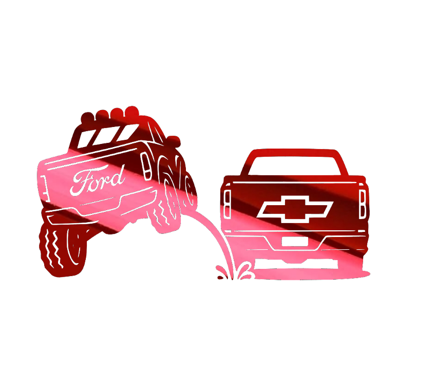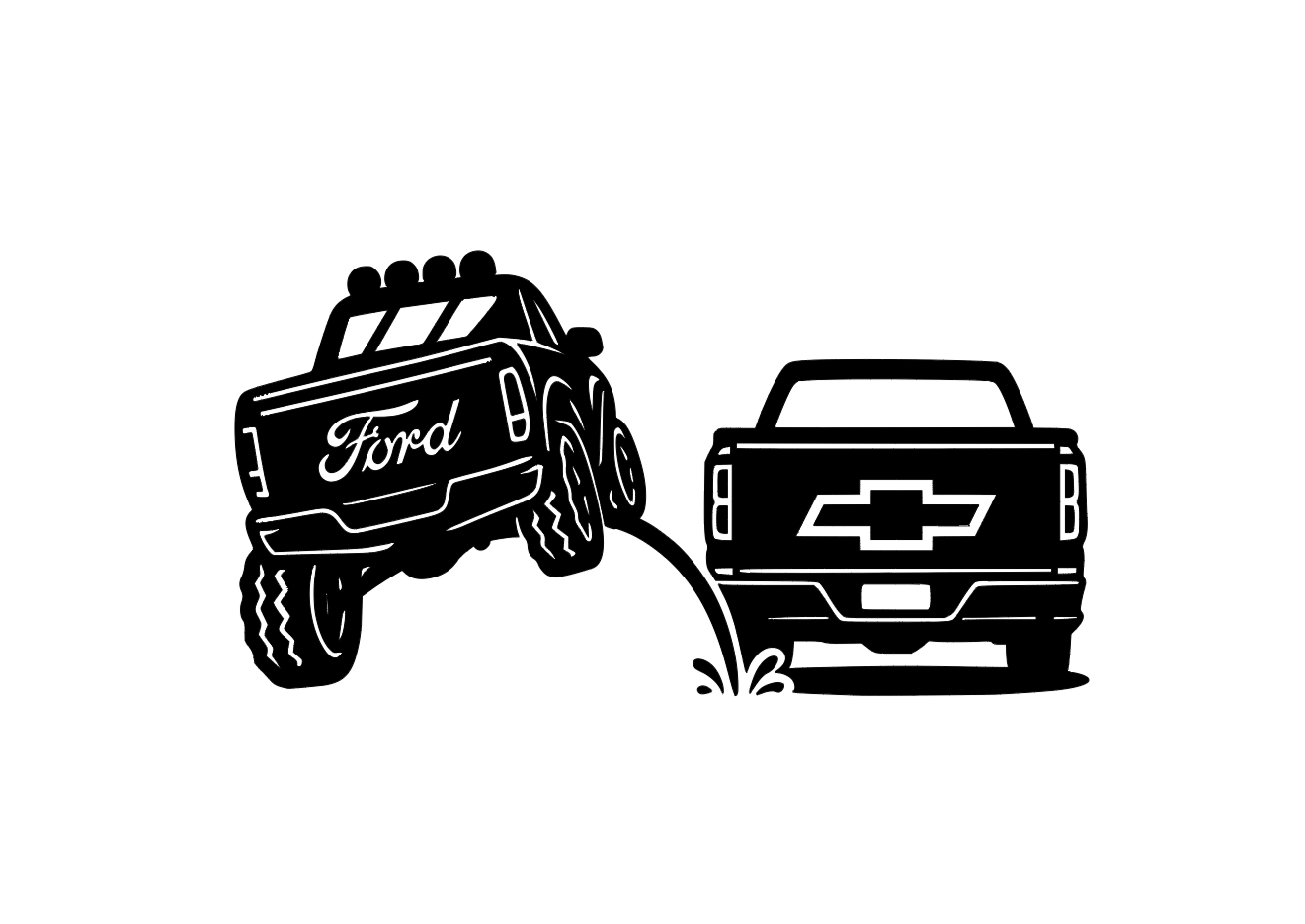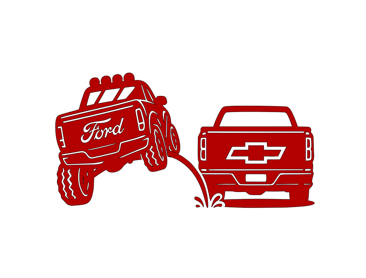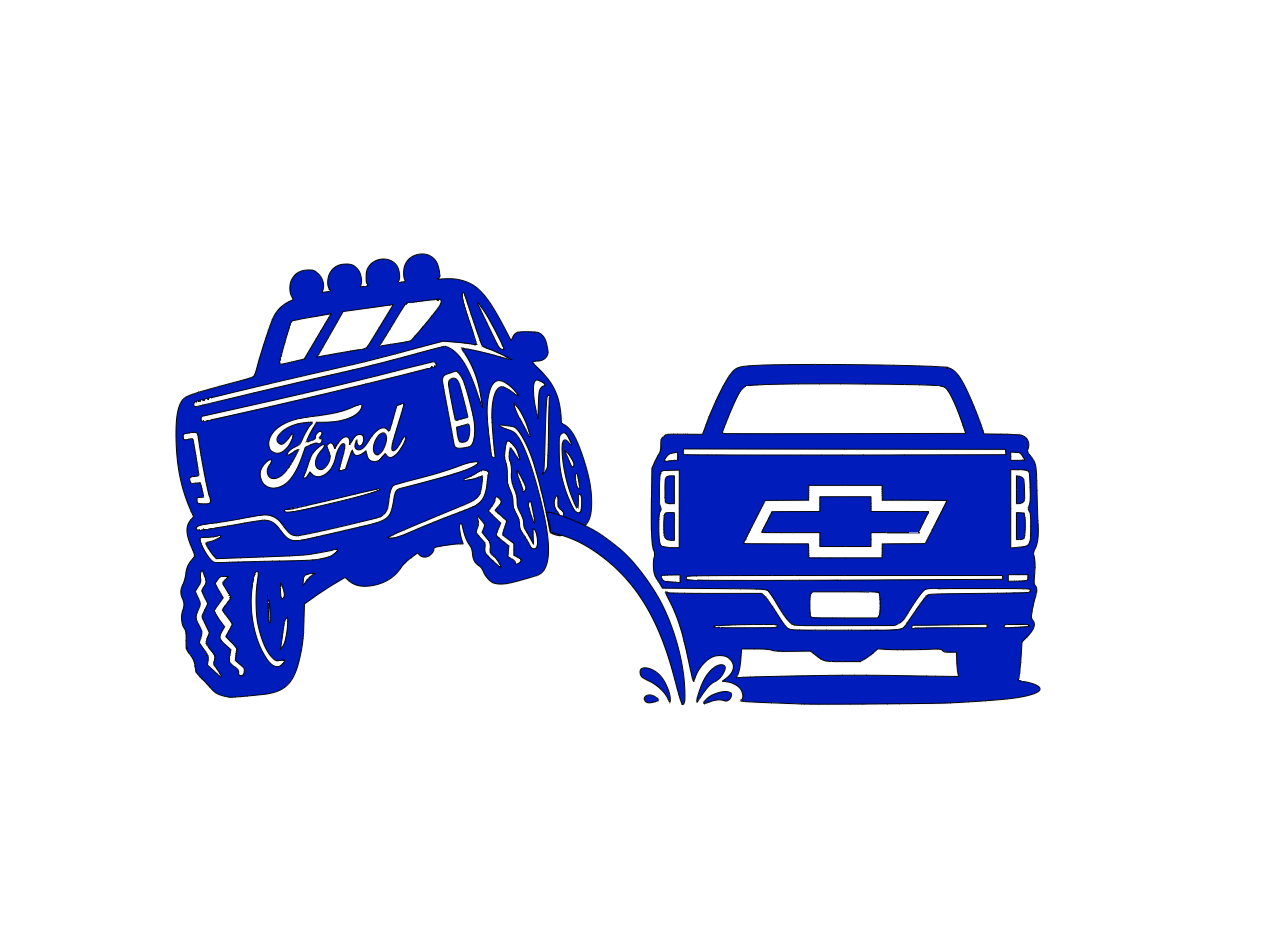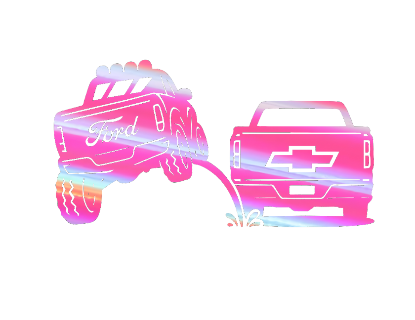 Ford pee on Chevy decal. Perfect for window, truck, or bumper. Available for F150, F250, F350, and Lariat models. This decal adds a unique touch to your vehicle. Size is 8x4.5 inches. Multiple colors available. Contact us for custom colors not listed.