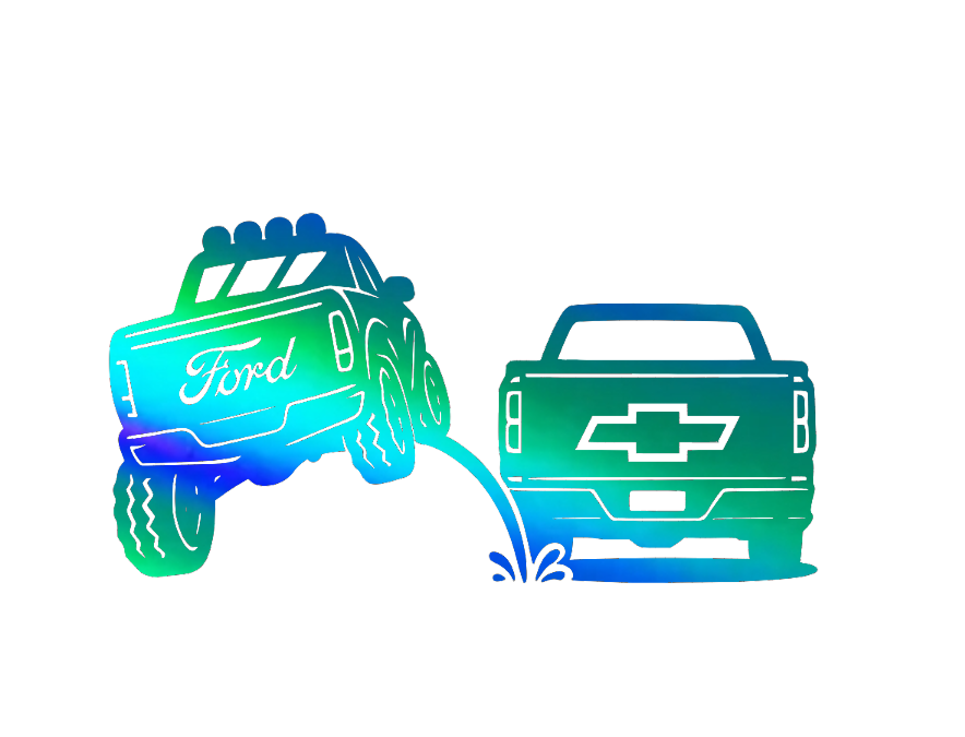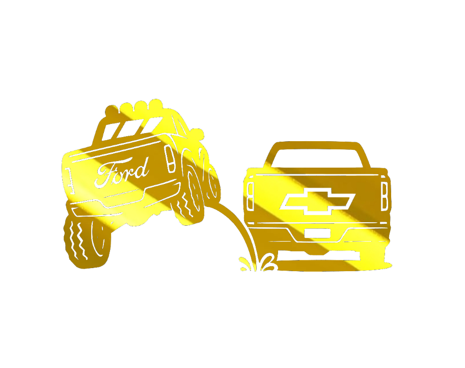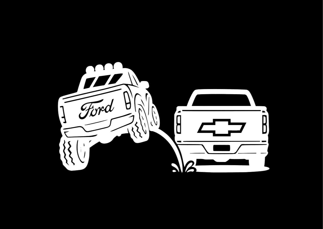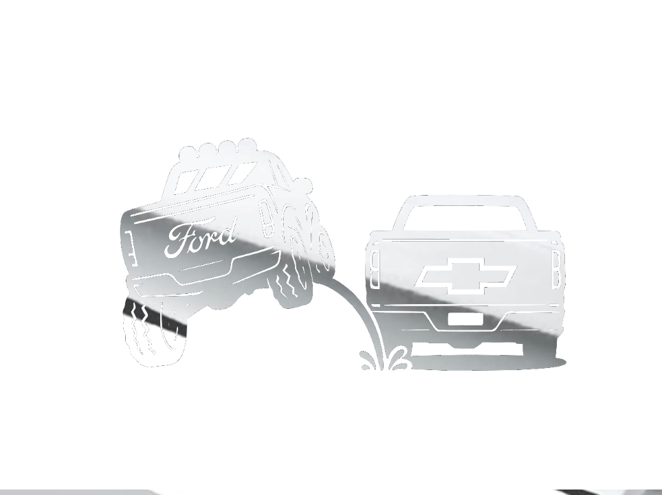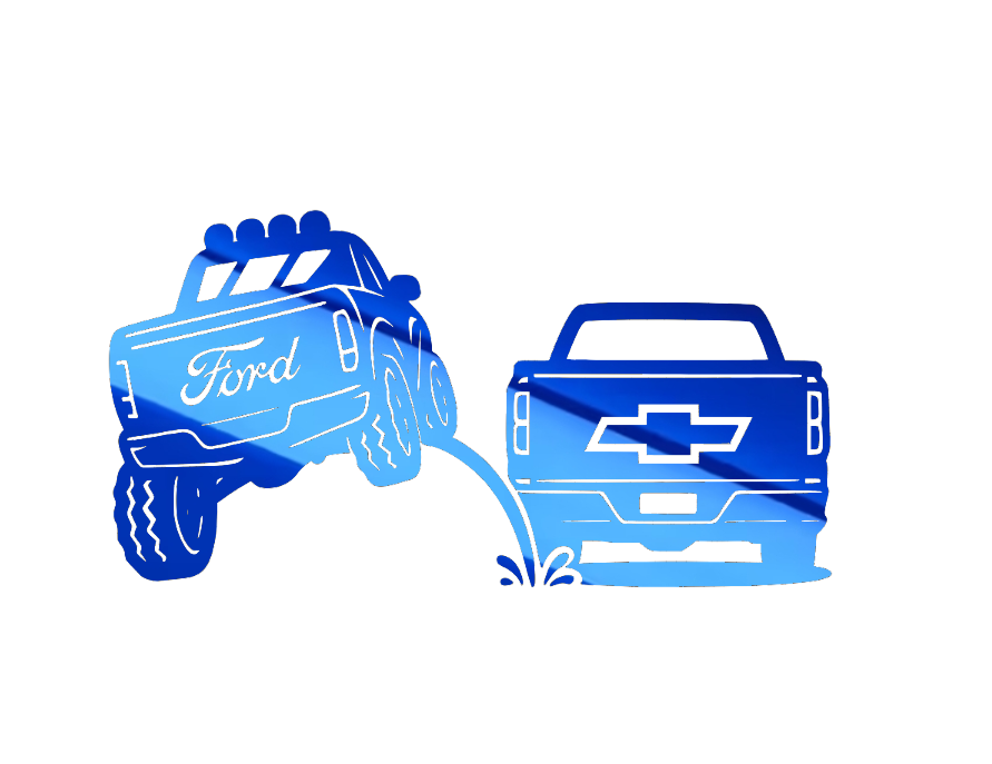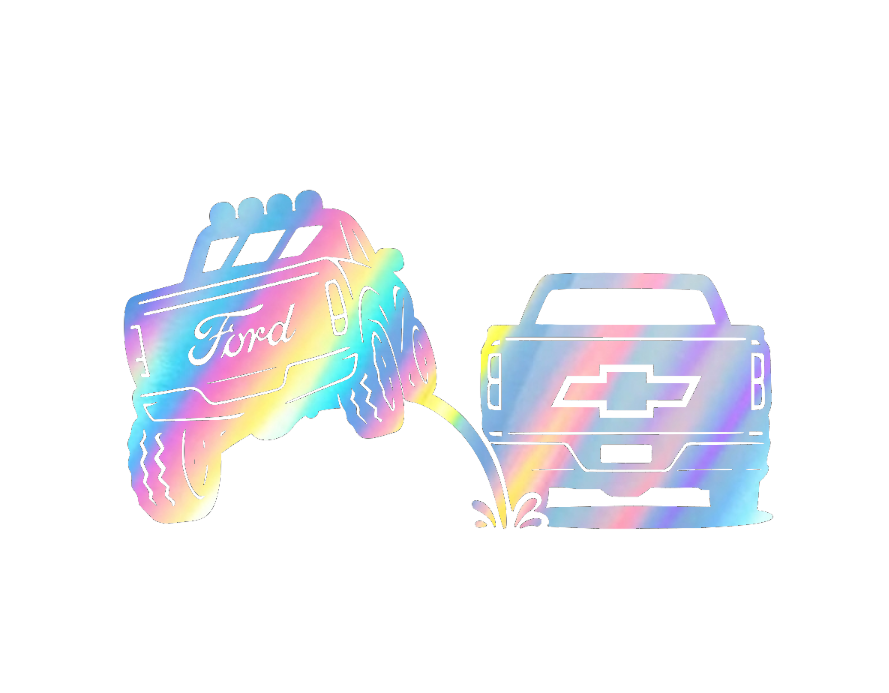 Ford pee on Chevy decal. Perfect for window, truck, or bumper. Available for F150, F250, F350, and Lariat models. This decal adds a unique touch to your vehicle. Size is 8x4.5 inches. Multiple colors available. Contact us for custom colors not listed.