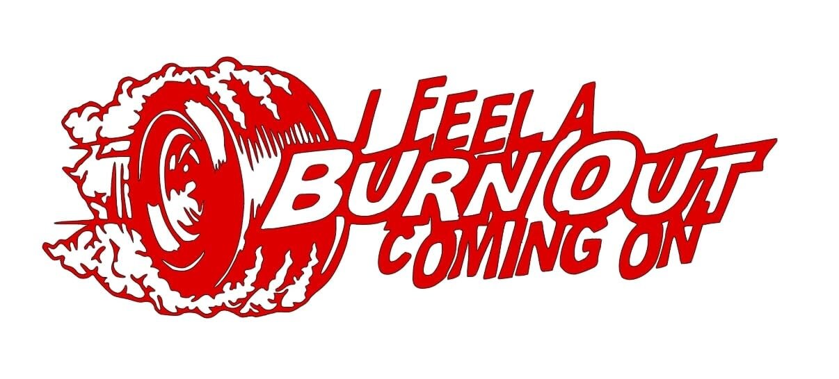 I feel a burnout coming on car, truck decal bumper sticker 9x3 inches multiple color choices