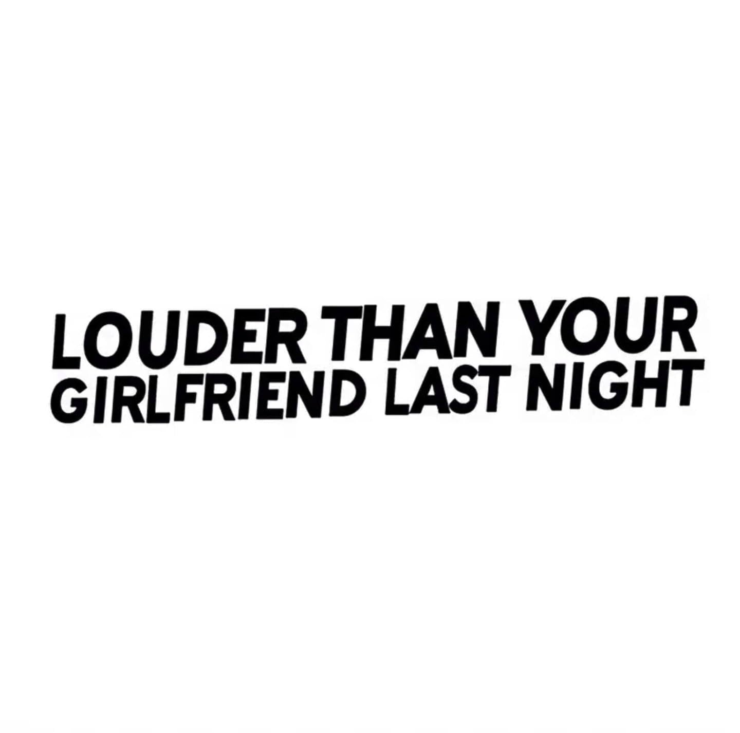 This funny car decal will make your vehicle stand out from the rest. The "Louder Than your girlfriend last night" text is sure to turn heads and give a chuckle to anyone who reads it. Available in multiple colors, you can choose the perfect one to match your car's exterior. Made with durable vinyl, this decal will last for a long time without fading or peeling. The clear transfer tape makes it easy to apply without any mistakes and allows you to see exactly how it will look on your vehicle before you apply it permanently. Whether you have a car or truck, this decal is perfect for adding some humor and personality to your ride!