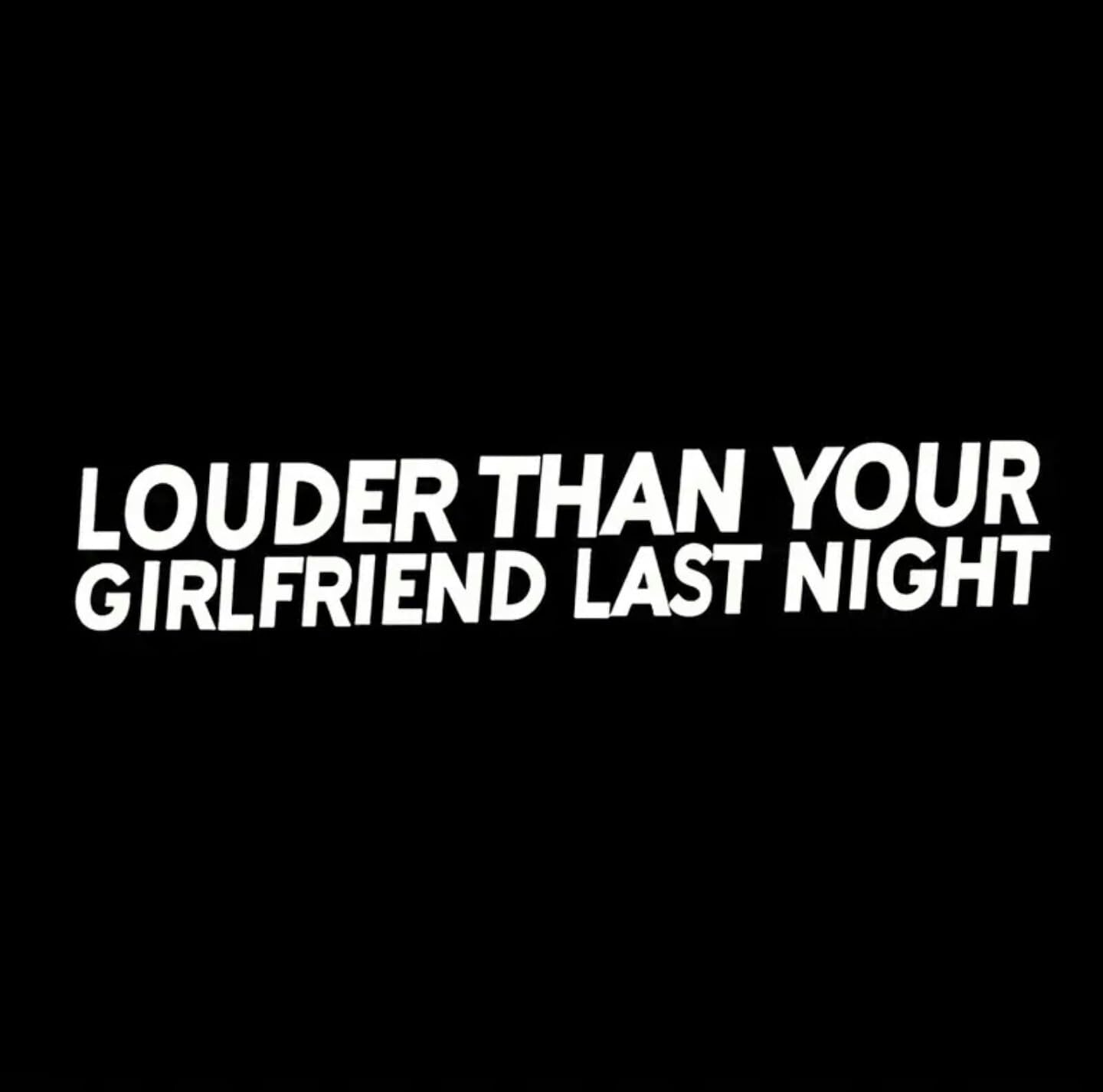 Louder than your girlfriend last night funny car decal, loud exhaust decal